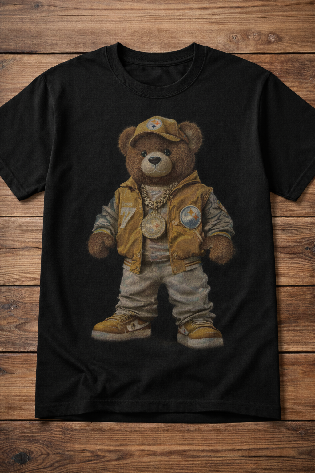 Rep your Steelers pride in style with this bold, streetwear-inspired graphic tee. Featuring a high-detail front print and a clean “Steelers” back design, this shirt blends fan energy with everyday fashion. The artwork is designed to pop on black fabric while maintaining a smooth, wearable look that feels like part of the shirt — not a stiff print.